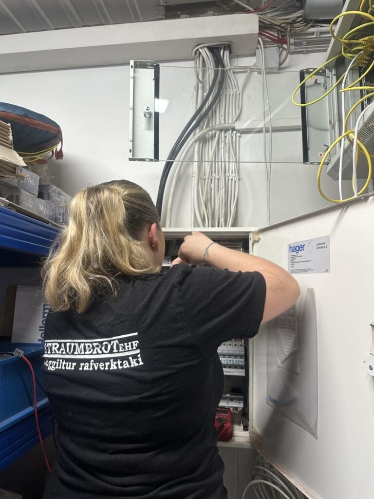 Eyvör Stella, nemi í rafvirkjun, er hjá fyrirtækinu Straumbrot, en vinnur einnig í Álverinu, til að öðlast fjölbreyttari starfsreynslu.